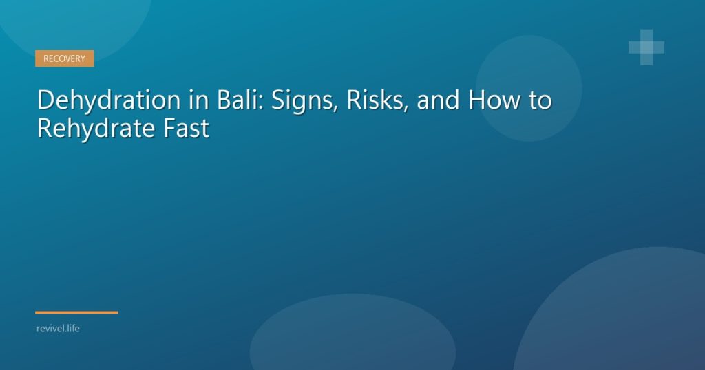 This guide explains why dehydration in Bali is so common, how to recognize the early warning signs, the real health risks, and the fastest ways to rehydrate, from simple oral methods to IV hydration therapy. If you’ve been drinking, our hangover recovery guide covers alcohol-specific dehydration strategies.